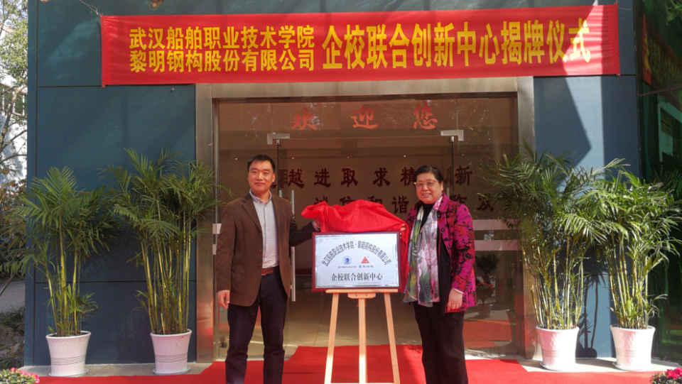 隨后,在與會(huì)代表的見(jiàn)證下,楊鵠院長(zhǎng)、朱寧董事長(zhǎng)共同為武漢船院、黎明鋼構(gòu)企校聯(lián)合創(chuàng)新中心揭牌。雙方希望精誠(chéng)合作,推進(jìn)落實(shí)已簽署的校企合作協(xié)議,通過(guò)發(fā)揮各自優(yōu)勢(shì),進(jìn)一步推進(jìn)企校聯(lián)合創(chuàng)新及人才聯(lián)合培養(yǎng),促進(jìn)產(chǎn)教融合、產(chǎn)學(xué)研合作深入開(kāi)展,以謀求企校生三方共贏,為社會(huì)創(chuàng)造更大價(jià)值。