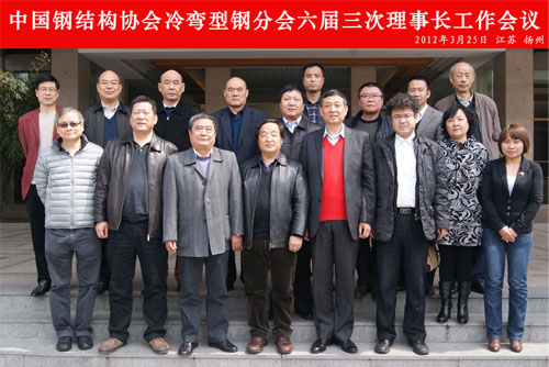 3月25日,中國鋼結(jié)構(gòu)協(xié)會(huì)冷彎型鋼分會(huì)六屆三次理事長工作會(huì)議在江蘇揚(yáng)州召開,本次會(huì)議討論并通過了冷彎型鋼分會(huì)2013年工作安排、人員調(diào)整、協(xié)會(huì)管理、吸收新會(huì)員等議案。會(huì)議由冷彎型鋼分會(huì)副理事長、武鋼集團(tuán)江北公司副總經(jīng)理萬國勝主持,出席會(huì)議的有冷彎型鋼分會(huì)理事長韓靜濤,冷彎型鋼分會(huì)副理事長、上海寶鋼型鋼有限公司總經(jīng)理周偉鋼,冷彎型鋼分會(huì)副理事長、泰安科諾型鋼股份有限公司董事長錢占緒,冷彎型鋼分會(huì)副理事長、上海佳藝?yán)鋸澬弯撚邢薰径麻L朱繼昌,冷彎型鋼分會(huì)副理事長、鋼鐵研究總院鋼藝所所長馮光宏,冷彎型鋼分會(huì)副理事長、香港和利鋼鐵有限公司總經(jīng)理黎鍔威,冷彎型鋼分會(huì)副理事長、南京中輕機(jī)械有限公司總經(jīng)理喻兵,冷彎型鋼分會(huì)副理事長、石家莊軸設(shè)機(jī)電設(shè)備有限公司董事長紀(jì)山,參加會(huì)議的還有:上海上海佳藝?yán)鋸澬弯撚邢薰究偣そ瓗r、副總黃宏江,武鋼集團(tuán)漢口軋鋼廠副廠長賈建輝、市場開發(fā)部長葉掀亮,南京萬匯冷彎鋼板樁有限公司副總經(jīng)理王圣清,香港和利鋼鐵有限公司副總經(jīng)理曾慶龍,《冷彎型鋼》雜志副主編張登科,冷彎型鋼分會(huì)工作總部汪一蘭等共21人。