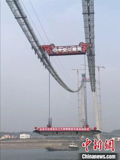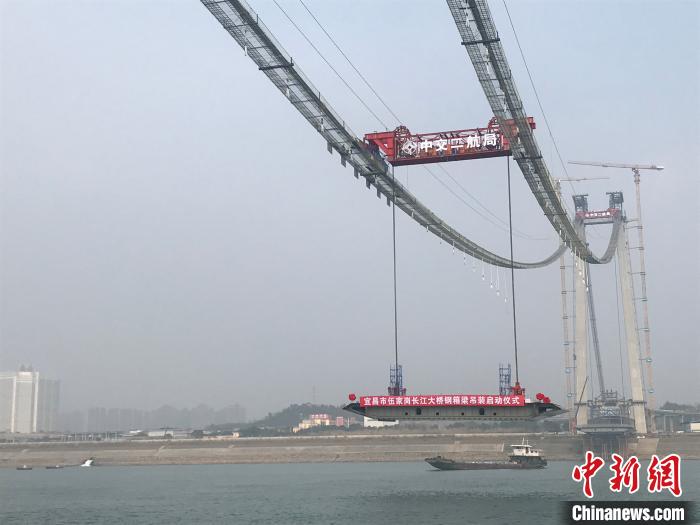 摘要:圖為,宜昌伍家崗長(zhǎng)江大橋首榀鋼箱梁吊裝現(xiàn)場(chǎng) 雷偉利 攝
